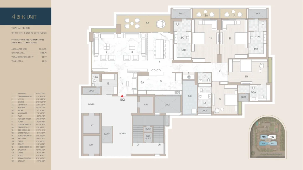 With a rare blend of sophistication and serenity, Riviera Palacio offers 4 & 5-BHK luxury residences that feel like palaces in the sky. With sweeping views of the city, beautifully designed interiors, and handpicked amenities, every home is a tribute to modern regality. This is where elevated living meets timeless grandeur, crafted for those who seek the extraordinary.